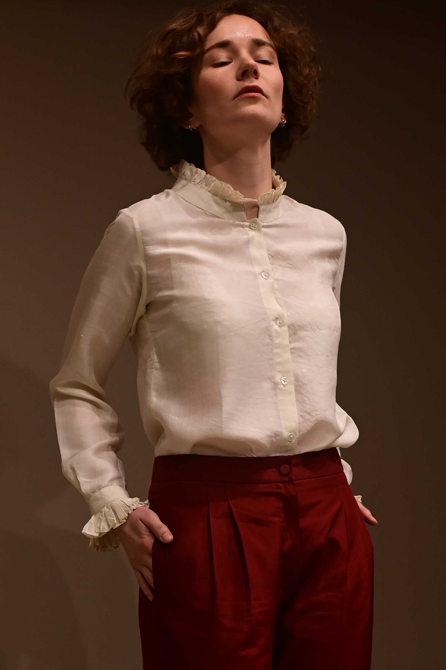 A collection of dresses, tops & bottoms in off-whites made with handspun...